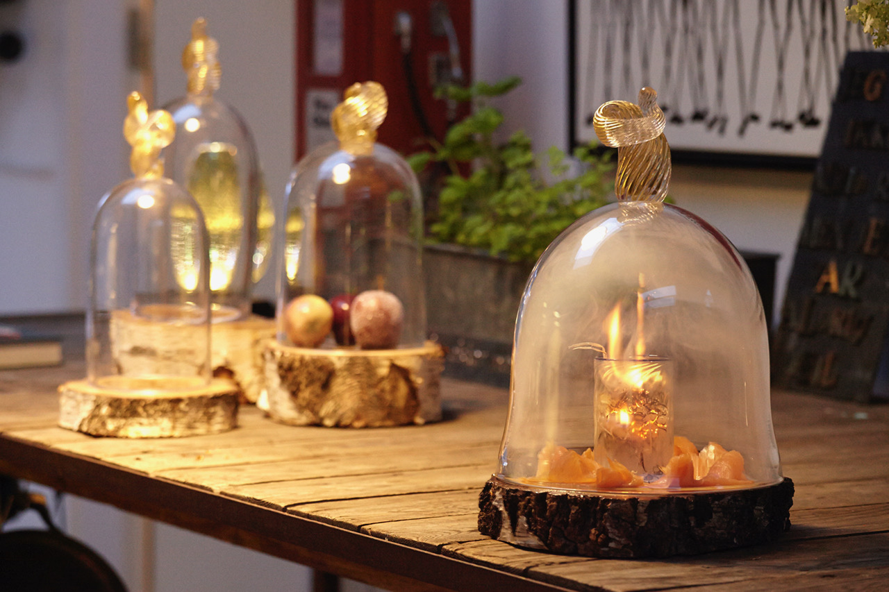 Den gamle osteklokke har fået nyt liv. Yerst Glas følger tidens trend, og skaber en ny og moderne klokke til mad, pynt, blomster eller det du har fantasi til.