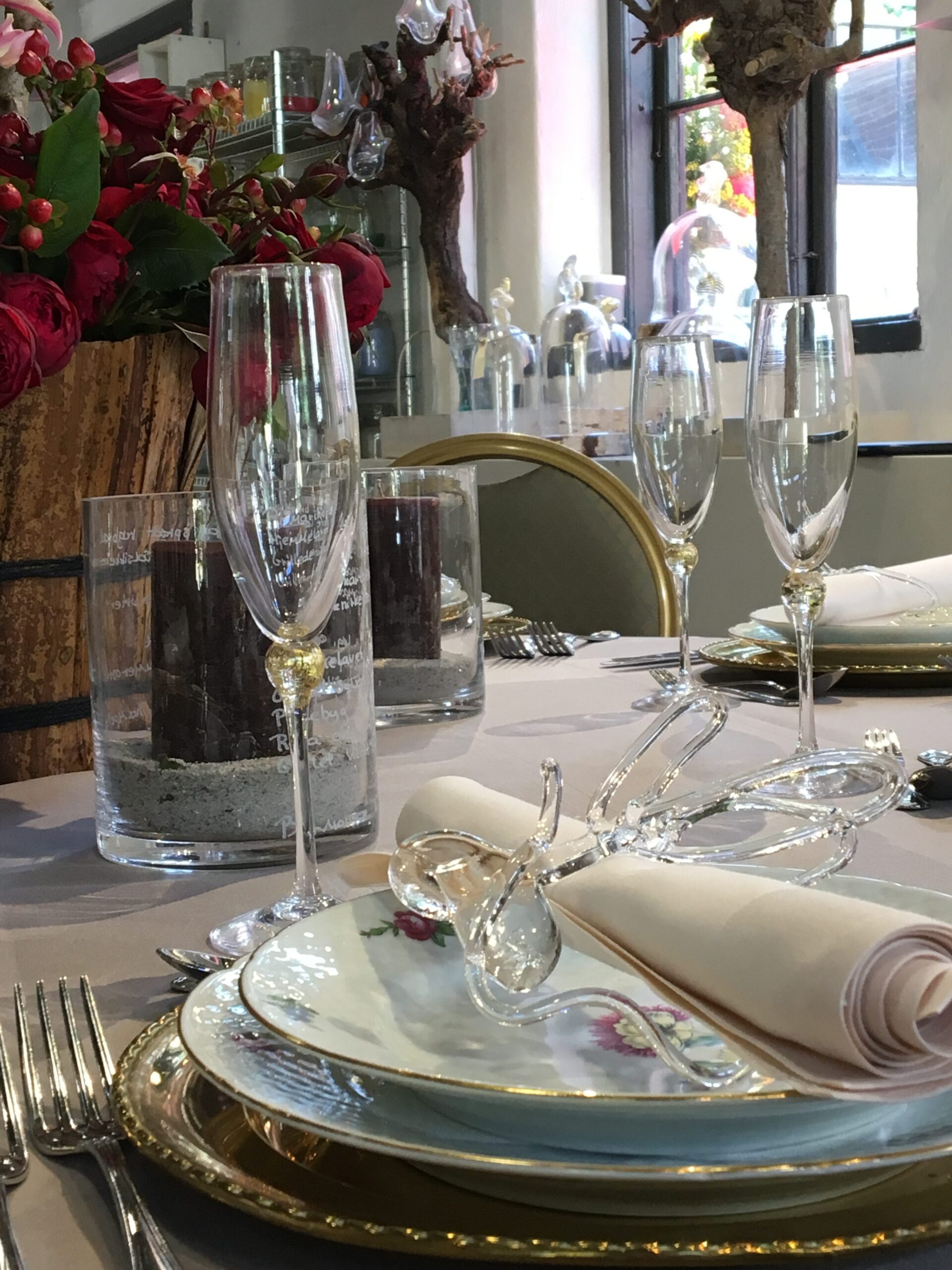 De nye champagne glas laves kun med 24 karat bladguld, da det er den farve som underbygger boblernes farve